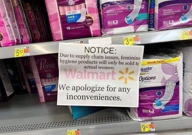 14. Ужасные времена недавно были: Уолмарт запретил продавать женские средства гигиены мужчинам, идентифицирующим себя в качестве женщин