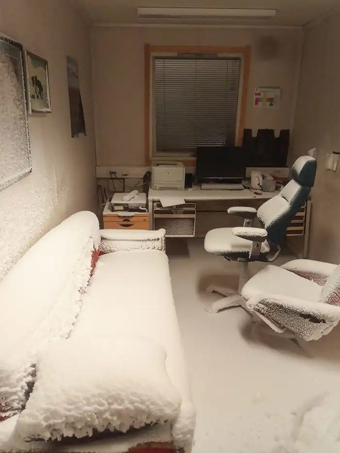 16. "Когда живешь на Шпицбергене, Норвегия, и забываешь закрыть окно в домашнем кабинете"