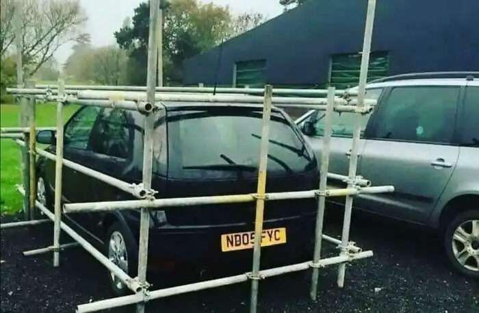13. "Мой друг сказал водителю черной Corsa не парковаться на стоянке компании. Тот в ответ нахамил. Так что мой приятель поставил ограждение вокруг его машины"