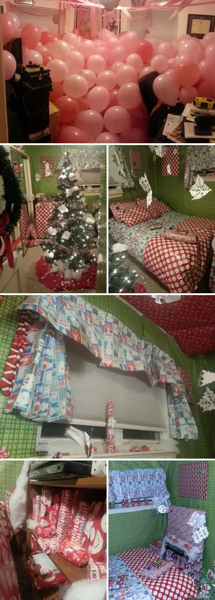 30. "Приколы соседей по комнате. Один получил 400 воздушных шаров. Он отомстил, когда сосед уехал на неделю: упаковал все вещи в его комнате в оберточную бумагу и положил на прежнее место"