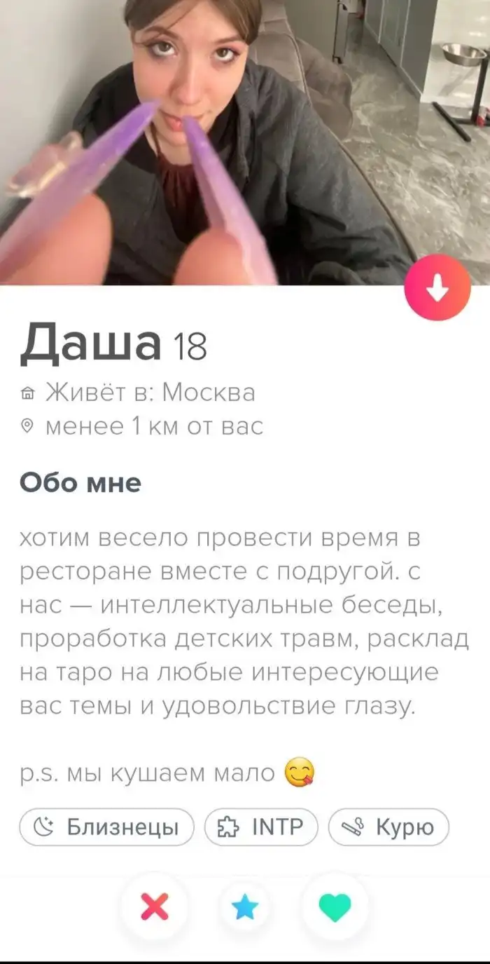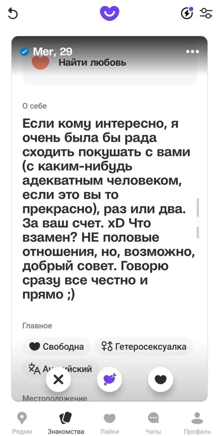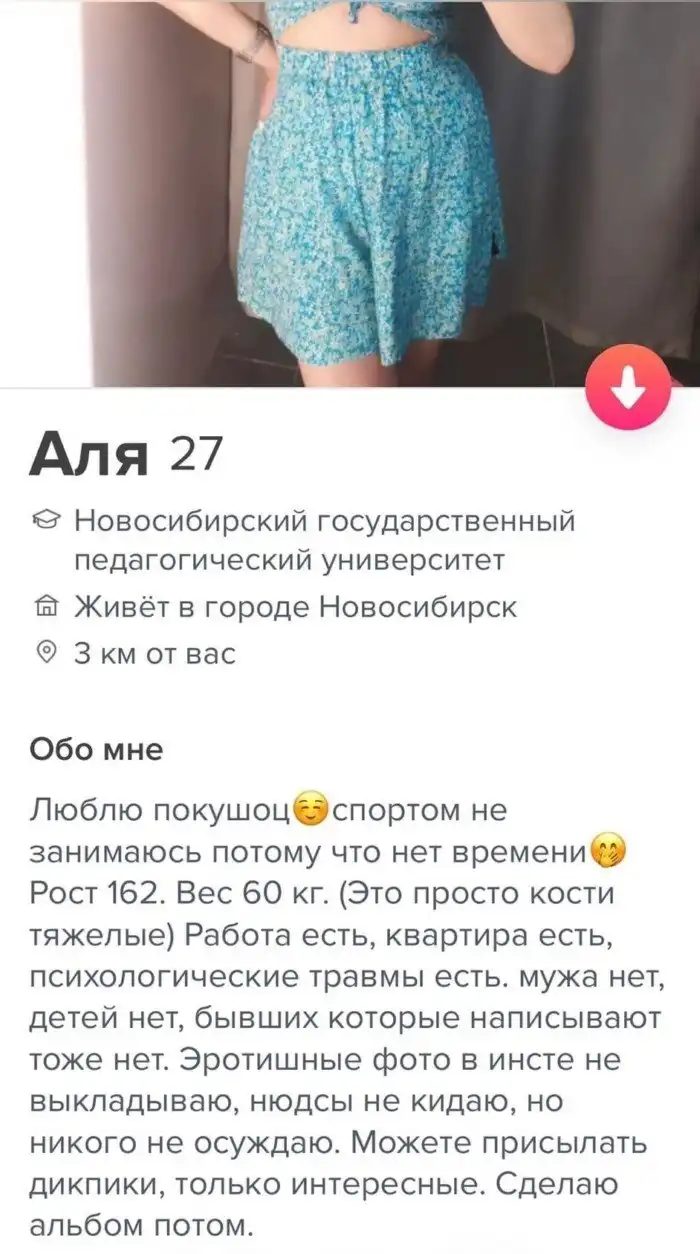 Люблю покушать, спортом не занимаюсь: нетипичные анкеты девушек из приложений для знакомств