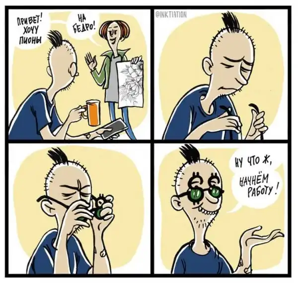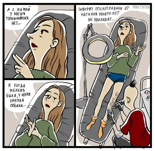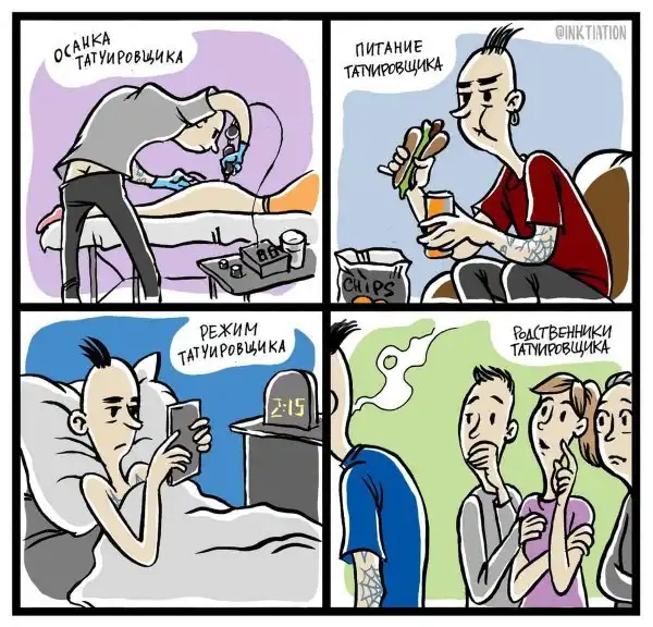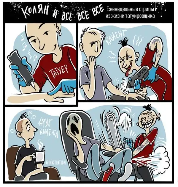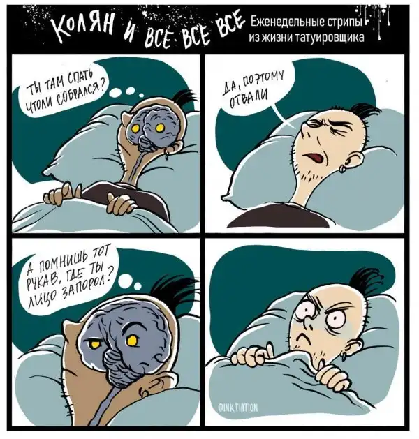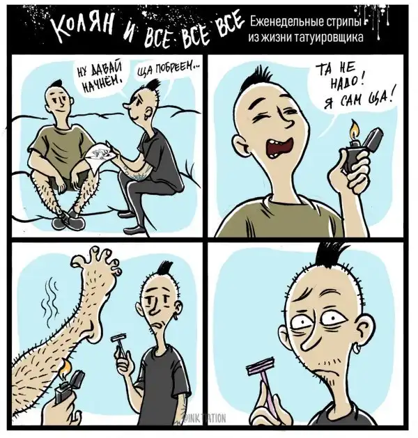 Москвоская художница и тату-мастер Анна Сучкова придумала прикольного героя для своих комиксов - Коляна Панчина. Он стал собирательным образом татуировщика, который наглядно показывает свои непростые и забавные будни. Но несмотря на все трудности и странности клиентов, Колян действительно любит свою работу. Итак, давайте поглядим, каково быть тату-мастером.