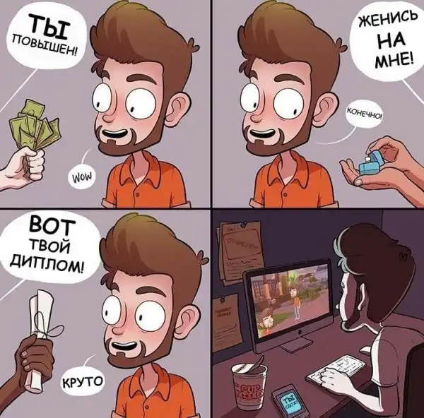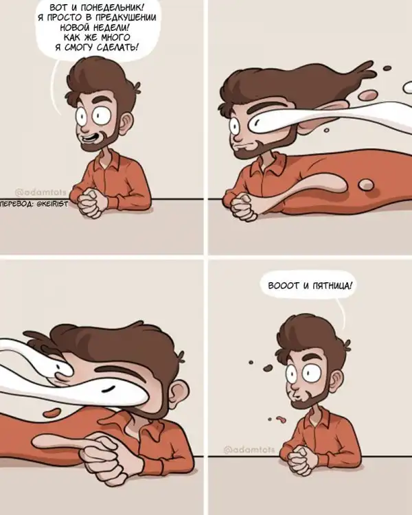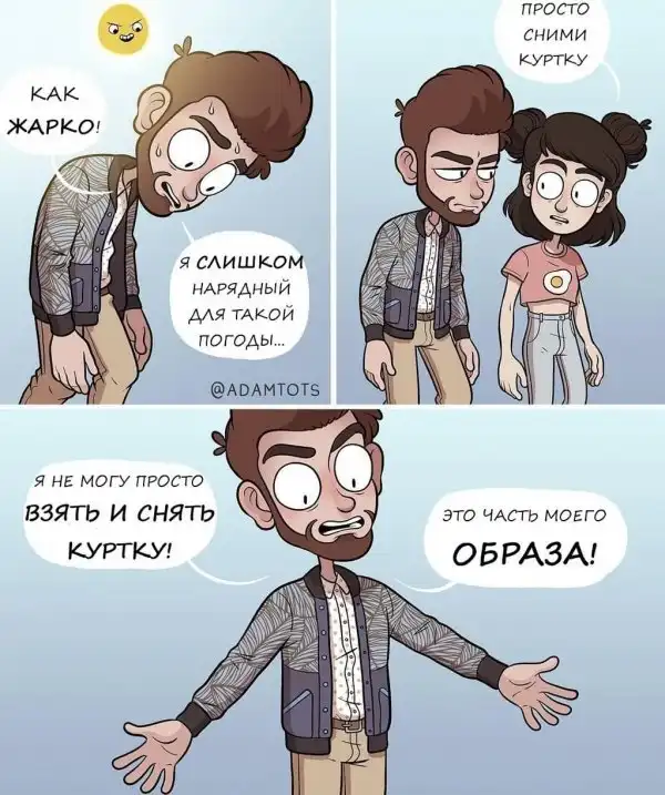 Известный иллюстратор Адам Эллис из США радует свою большую аудиторию читателей с 2013 года. Его комиксы переводят в разных странах, что делает его творчество еще более популярным. Адам рисует простые и незатейливые ситуации, а потом наполняет их смешным и абсурдным юмором, который при этом не теряет своей жизненности.