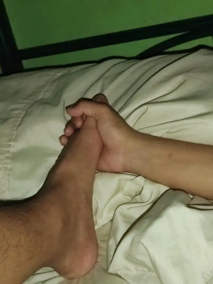 Жена имеет привычку держать меня за руку, когда спит. Я повернулся к другому концу кровати, чтобы посмотреть аниме на телефоне и не разбудить её, и вот что получилось.