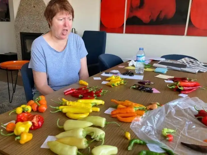 Жена согласилась помочь мне определить, какой из этих перцев чили острее. Кажется, она больше на это не пойдёт