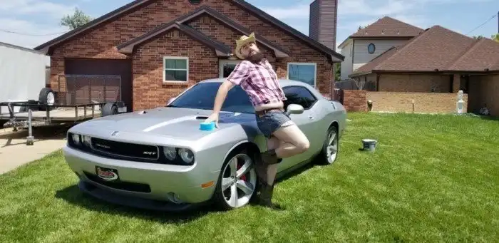 Жена подарила машину мужу. В честь этого он решил устроить эротическую фотосессию