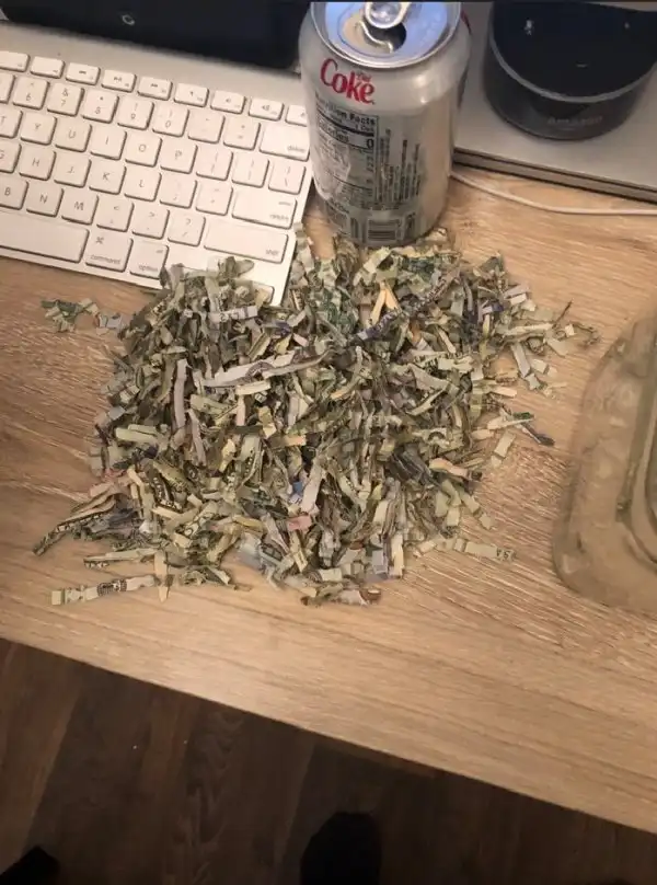 Здесь 1060 долларов, которые 2-летний ребенок пропустил через измельчитель бумаги