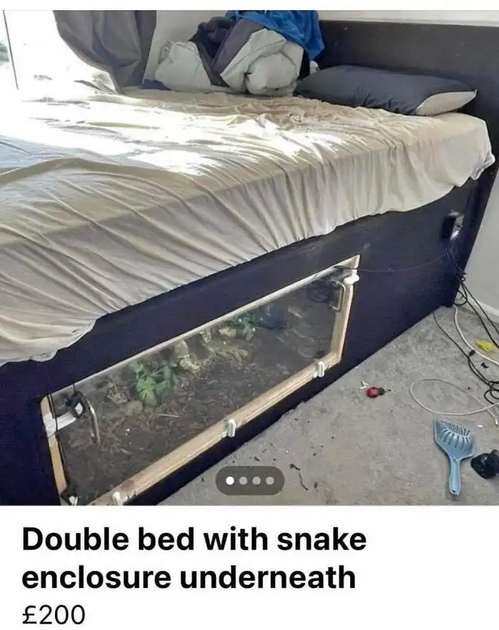 6. "Двуспальная кровать со змеиным террариумом снизу", 200 фунтов стерлингов