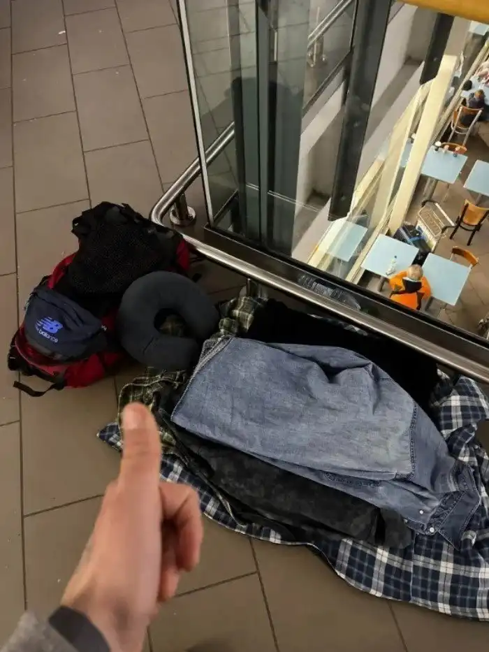 "А это - моя кровать. Рейс задержали на всю ночь"