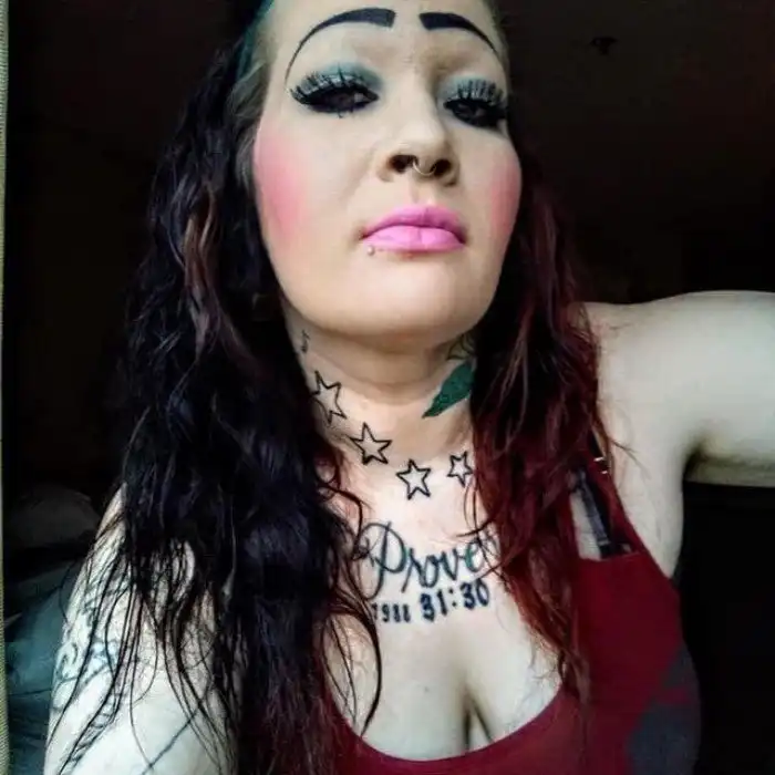 Из-за укороченных бровей её взгляд выглядит вдвойне жалобней