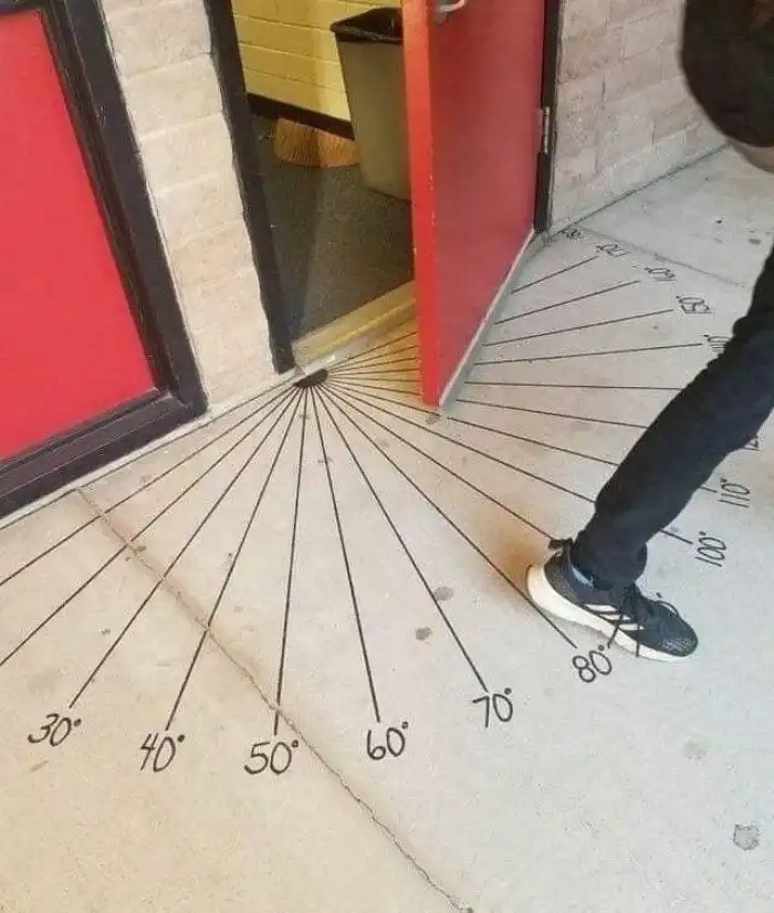 Очевидно, что эта шкала должна была показывать, на сколько градусов открывается дверь, но есть нюанс…