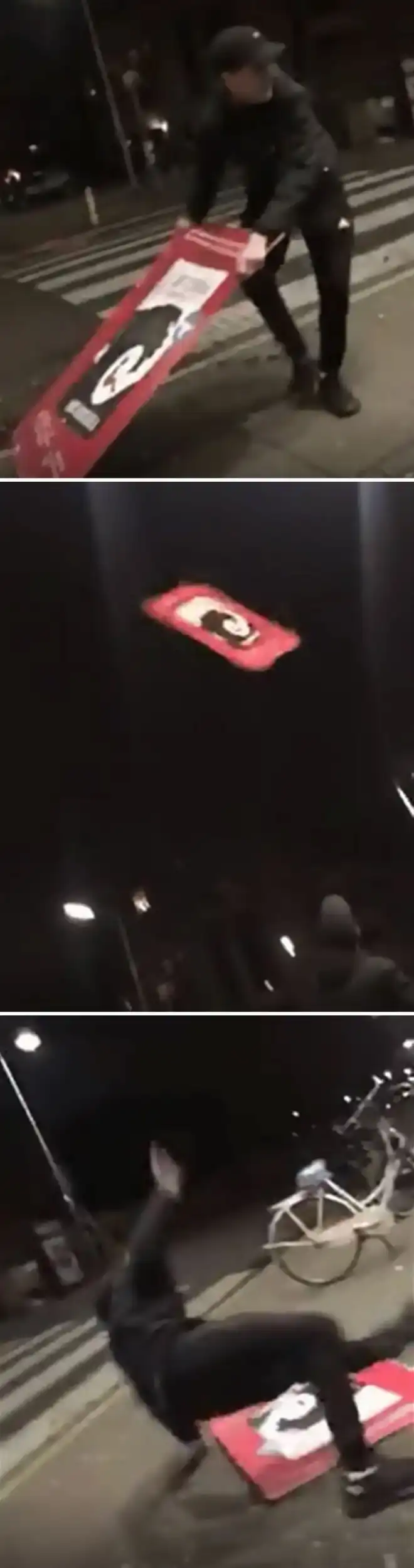 Бросать дорожные знаки ради развлечения опасно для здоровья.