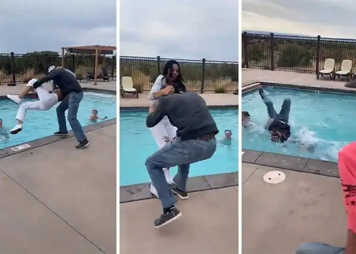 Хотел скинуть девушку в бассейн - и скинул. Но есть нюанс.