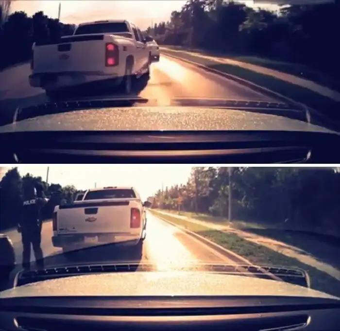 Попытался проскочить мимо грузовика, убегая олт полиции, но у кармы были свои планы.