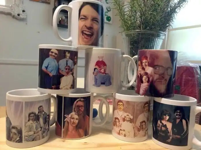 15. "8 лет назад я ради смеха сделал кружку на День Валентина с жутким фотошопом нашей семейной фотографии, и с тех пор это стало традицией"