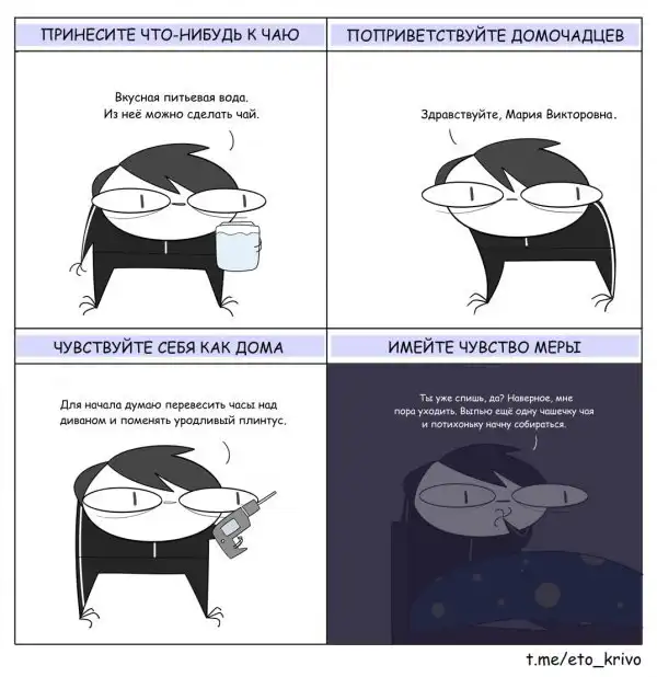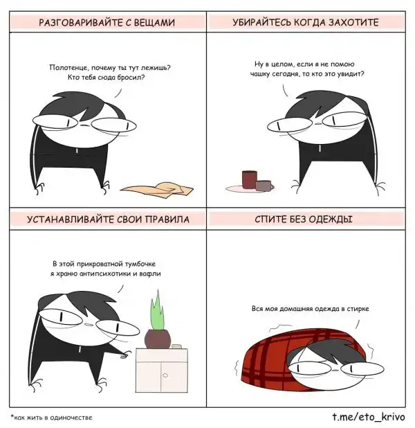 Предлагаем посмотреть на забавное творчество художницы под ником Жре Крипяо, которая рисует комиксы про странных созданий - "руконожек". Но не смотря на свою необычность, они ведут себя в точности как мы. Несмотря на абсурдность, комикс получился очень даже жизненным.