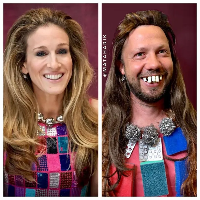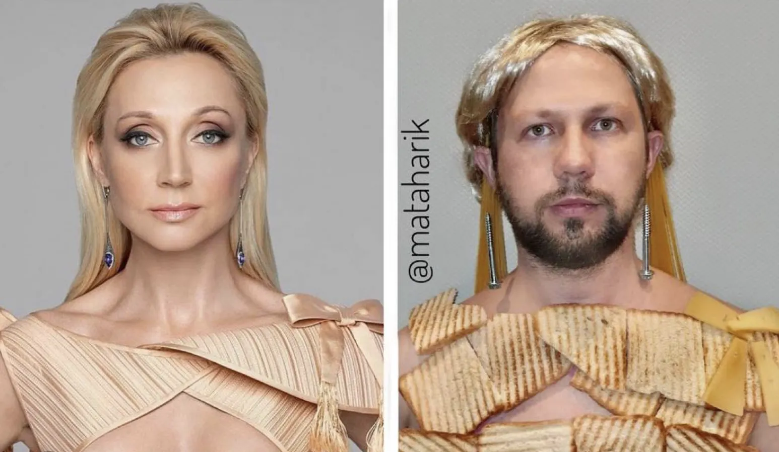 Юрий - пародист с ником "mataharik". Мужчина копирует образы отечественных и зарубежных звёзд, создавая луки из подручных средств. Получается комично и нелепо!