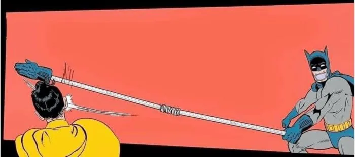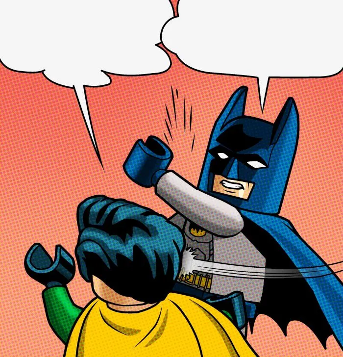 Картинка-шаблон, где Бэтмен даёт пощёчину Робину стала популярным мемом в 2010 году. Впервые мем использовали на сайте SFWChan. В том варианте Робин спрашивает, что подарили родители на Рождество. Бэтмен отвечает, что его родители умерли.