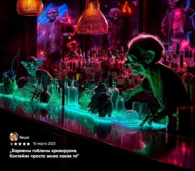 Владельцы одного бара в Москве сгенерировали в ИИ картинки по своим негативным отзывам :tongue: