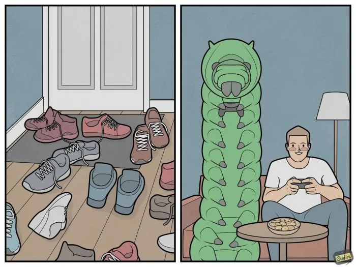 Помимо контекста, хочется отметить уникальную авторскую рисовку в сдержанных тонах, которая не может не радовать. Юмор и эстетика подачи — браво, Антон!