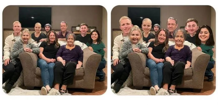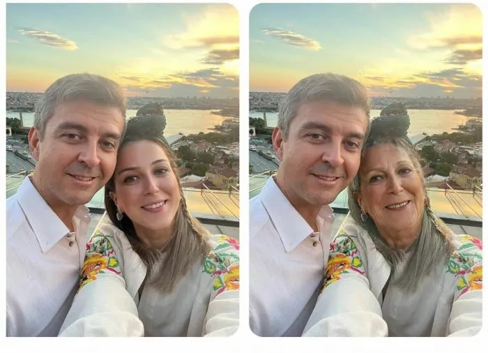 Лицо моей невестки выглядит так, будто она напугана, а её рука вот-вот отвалится. Можешь сделать её более естественной?