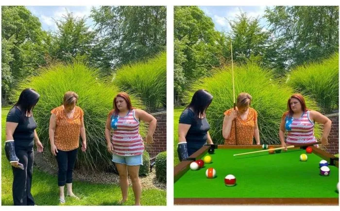 Привет Джеймс, сделали рождественское фото с друзьями. Но рука моей подруги на нём выглядит странно. Исправь это