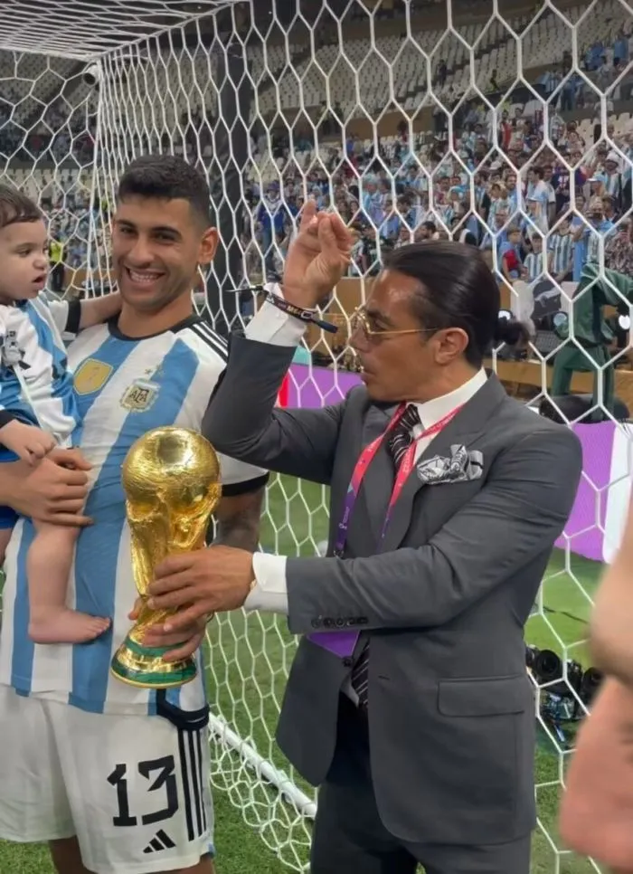 18. Турецкого повара по прозвищу Salt Bae раскритиковали за то, что он "посыпал солью" кубок, целовал его и настойчиво просил фото с футболистами
