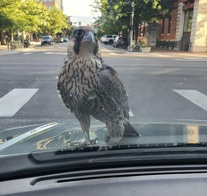 2. «Остановился на красный, и в этот момент на капот моей машины приземлился сапсан»
