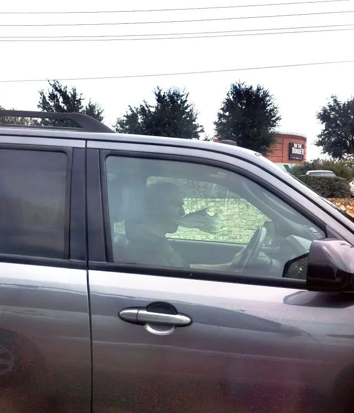 1. «Питбуль вытащил свою плюшевую игрушку, чтобы показать её собаке из другой машины»
