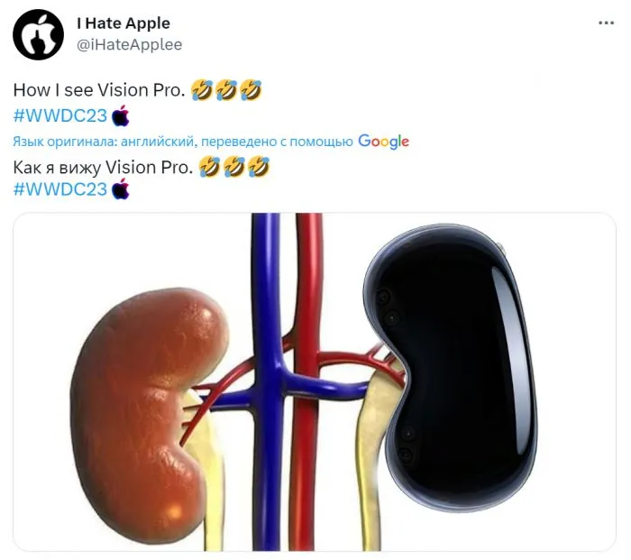Vision Pro будет стоить $3499 (почти 300 тысяч рублей). В продажу он поступит в 2024 году. Ближе к этому времени в магазинах Apple можно будет потестить новинку. Пользователей сети очень поразила цена девайса и они принялись соревноваться в остроумии.