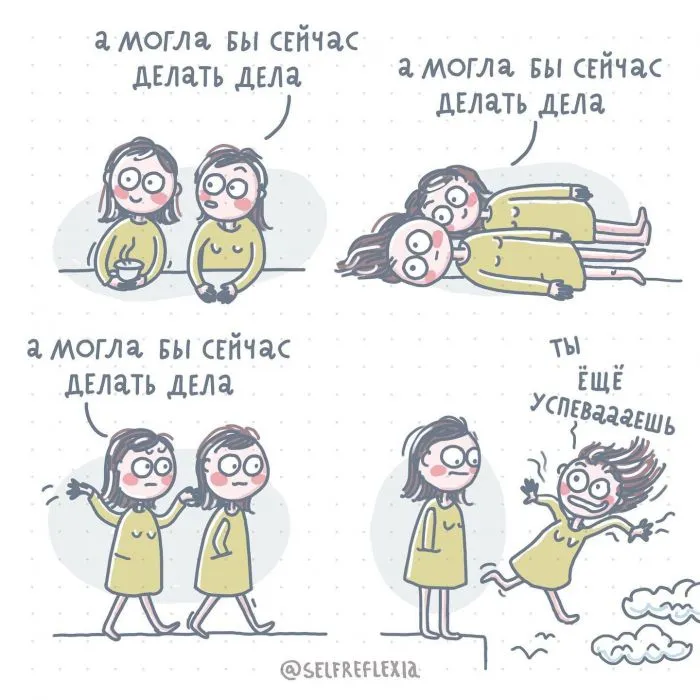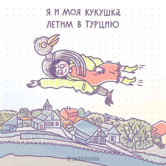 Таня родилась в глуши, но живёт в Москве. Ей 36 лет, у неё есть муж и ребёнок. Помимо офисной работы, у неё есть свой проект с комиксами по названием "Selfreflexia". На её профиль в соцсетях подписаны 50 тыс. человек. С помощью рисунков девушка показывают свою жизнь, трудности, с которыми сталкивается, они будут знакомы многим. Немного рефлексии с картинках!