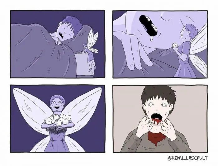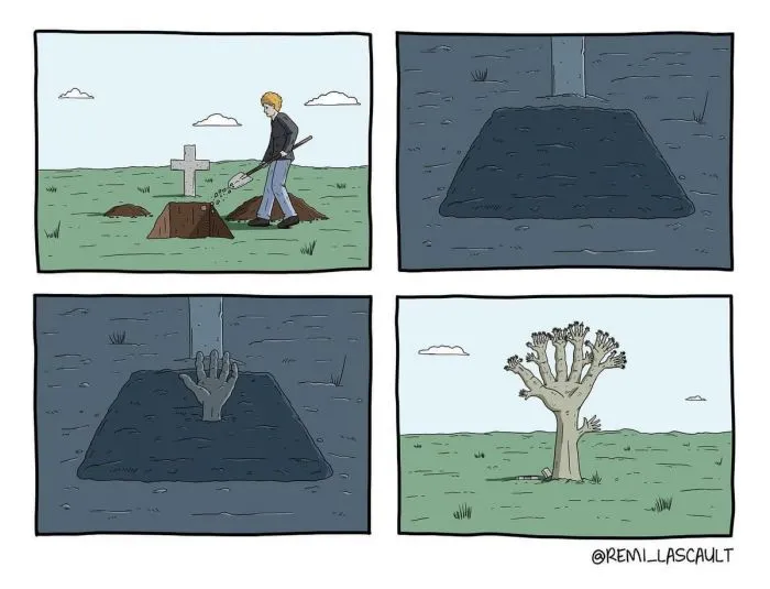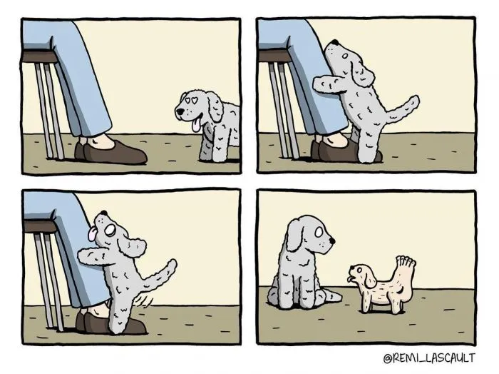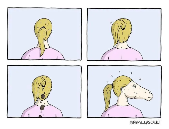 Реми Ласко — талантливый французский художник из Парижа, который полюбился пользователям интернета за свой узнаваемый простой стиль рисовки и неповторимую подачу чёрного юмора. Автор рисует яркие коллажи из четырёх картинок, которые рассказывают маленькую, но крайне увлекательную историю с нетипичным концом.Реми работает арт-директором. Иллюстрации — это скорее его хобби, чем основной вид деятельности. Автор признаётся, что тратит на создание своих ироничных шедевров довольно немного времени, поэтому рисует их каждый раз, когда у него появляется хотя бы немного свободного времени. Если вы смотрите работы Ласко впервые, то будьте готовы к тому, чтобы удивляться и недоумевать. Однако в окончательном результате вы проникнитесь юмором автора и получите яркие впечатления.