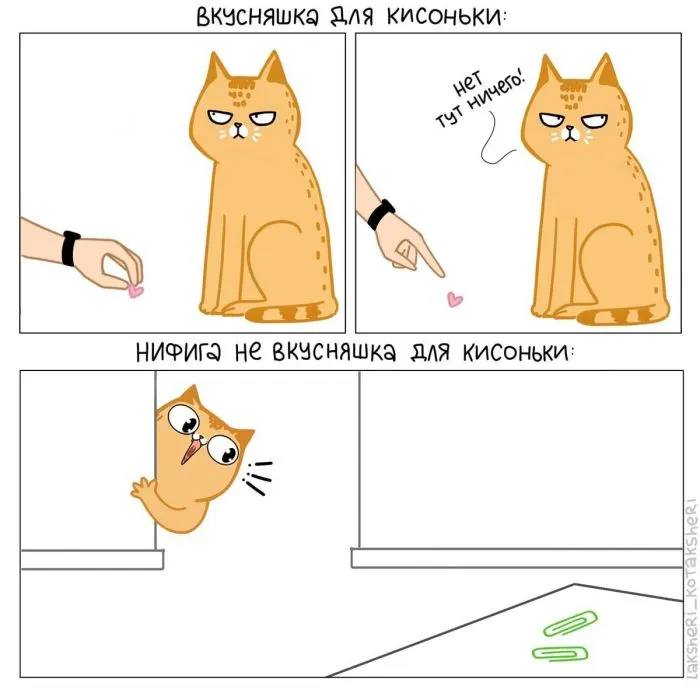 Кстати, это Малявочка — новая кошечка в семействе. Перспективная героиня этих рисованных историй.