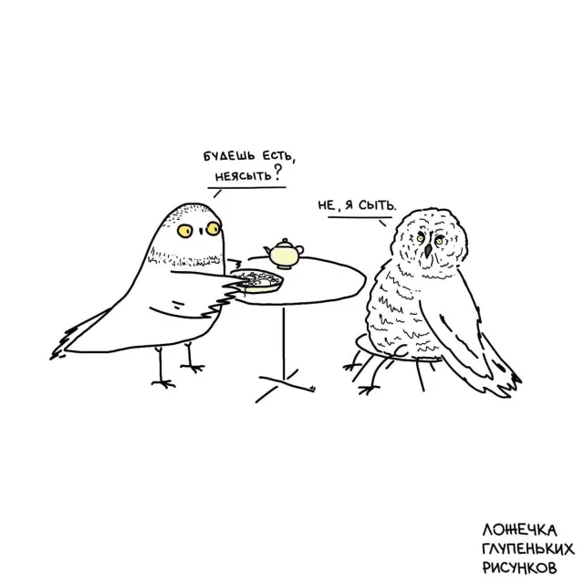 Найдем ли мы тут интеллектуальный и остроумный юмор в духе Джорджа Бернарда Шоу? Пожалуй, что нет. Достойны ли эти картинки висеть в художественных галереях? Ни в коем случае. Но художница этих иллюстраций Даша Шевченко и не претендует ни на какие звания и заслуги. Ее задача - нарисовать милый, забавный, простой и по-доброму глупенький контент, который поможет нам разгрузить голову и улыбнуться. Собственно, вся суть в названии ее работ. Ну что ж, давайте заглянем?