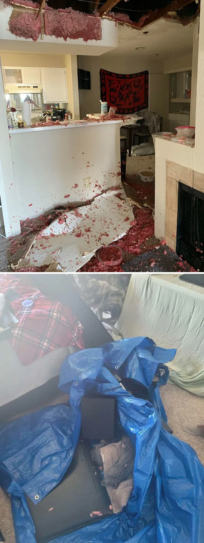 5. "Несколько месяцев говорил арендодателю о провисающем потолке на моей кухне, а сегодня вечером обнаружил это"