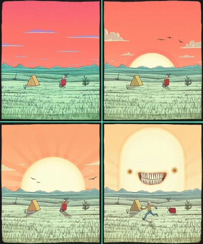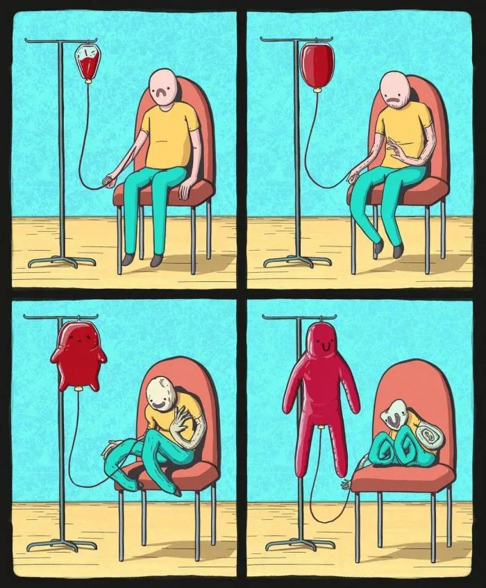 Автор удивительным образом сочетает в своих картинках вполне реальные вещи и подаёт их под соусом тонкого юмора. Ах да, атмосферная стилистика рисовки мало кого оставляет равнодушным. Тот случай, когда вроде и мерзко, но невозможно перестать смотреть 🙂