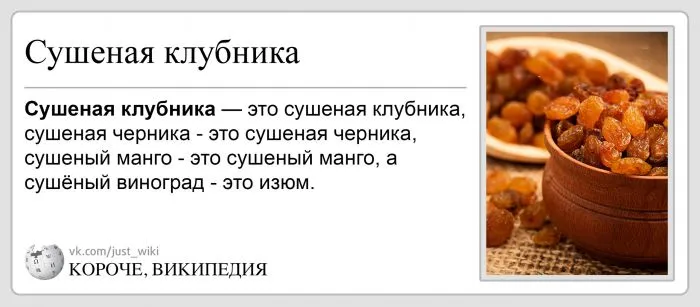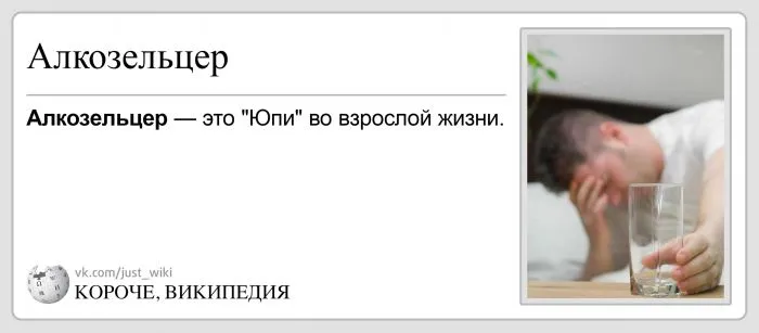 Вконтакте есть паблик "Короче, Википедия". Авторы написали следующее описание: "это как Википедия, только короче, понятней и с юмором. И главное ничего лишнего". Предлагаем посмотреть на них варианты объяснения всего.