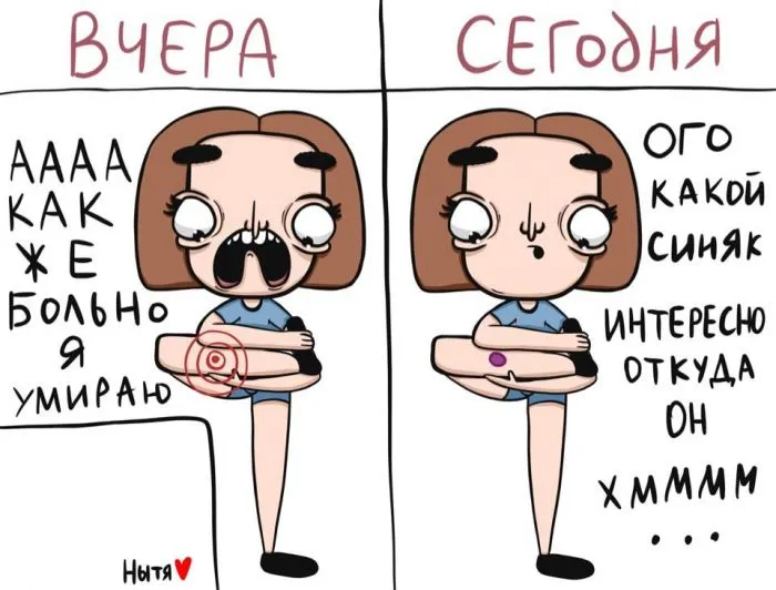 Анна Аксёнова — иллюстратор с большим запасом забавных персонажей, главный из которых — девушка, с которой приключаются курьёзные бытовые ситуации, и она не стесняется об этом «поныть»! Смешные реакции и карикатурное изображение не оставят вас равнодушными, ведь юмор помогает справиться с серой повседневностью и печалями. Псевдоним «Нытя» отражает настроение комиксов, в которых девушка не боится говорить о самом больном в самой мягкой форме.
