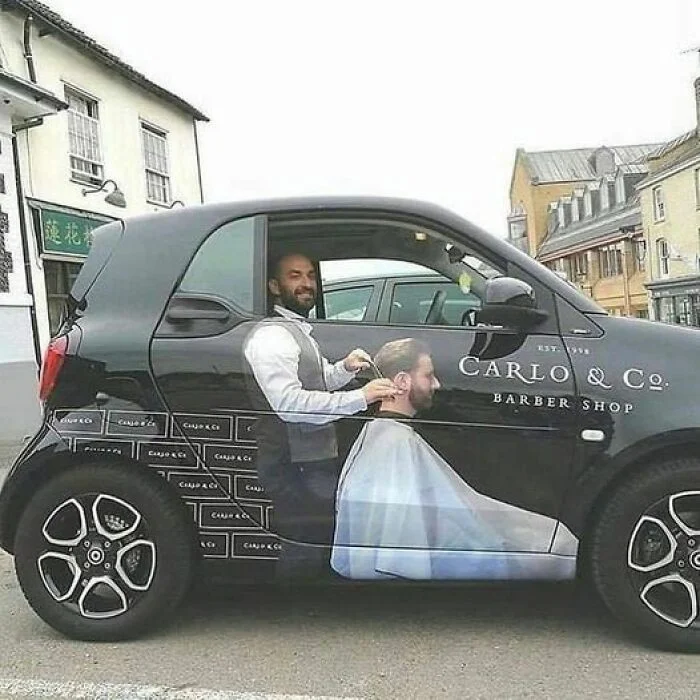21. Отличная идея партизанского маркетинга. Реклама барбер-шопа