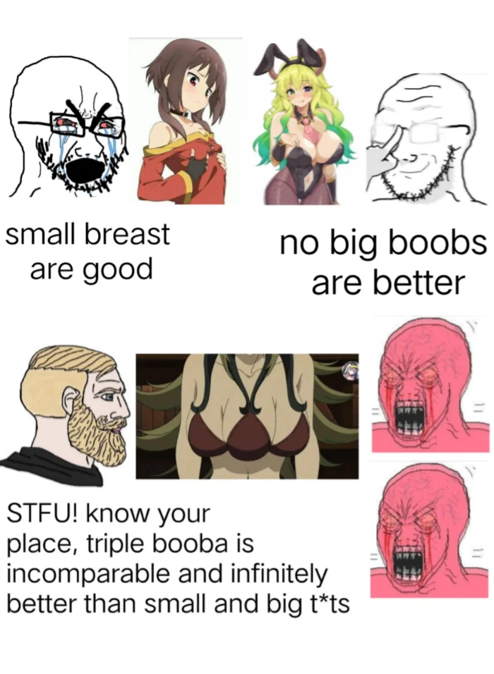 Позатыкали ёбла! Знайте своё место. Тройные бубсы бесподобны и бесконечно лучше маленьких и больших сисек