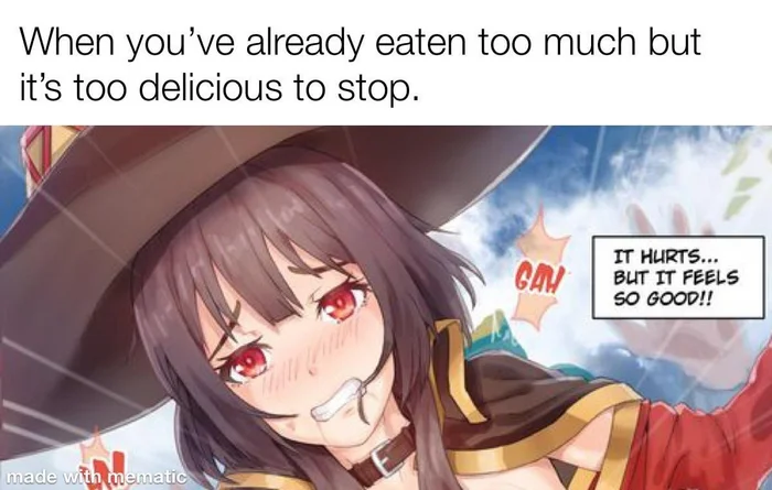 Когда ты уже съел очень много, но так вкусно что ты не можешь остановиться