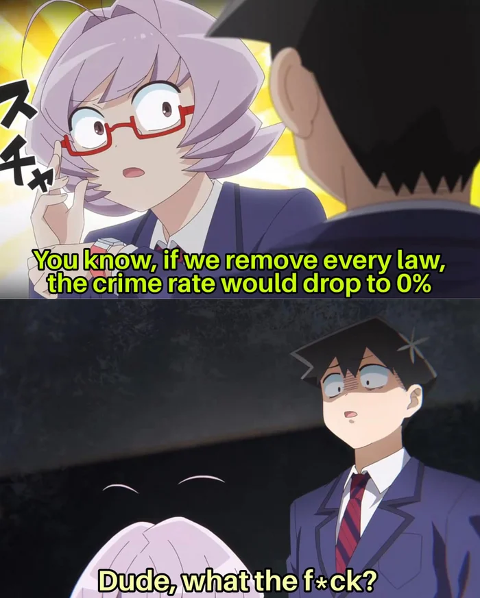 - А ты знал что если избавиться от законов, то преступность снизиться до нуля?