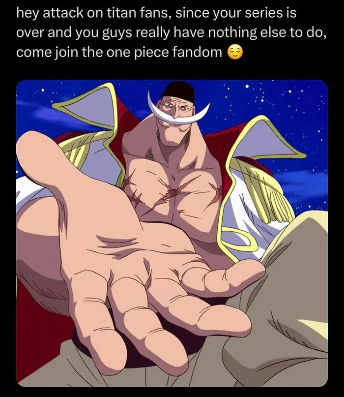 Эй, фанаты Атаки Титанов. Раз ваш сериал закончился и вам нечего делать, присоединяйтесь к фандому One Piece😌