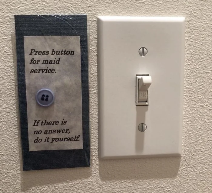 "Нажмите кнопку для вызова горничной. Если не отвечает, то делайте сами".