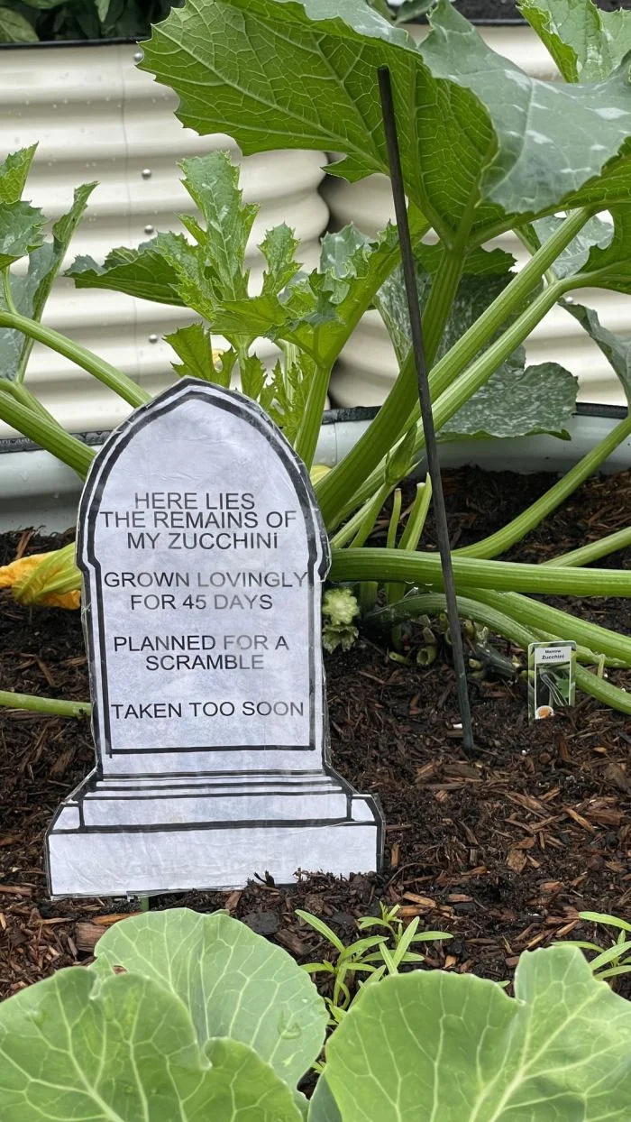 "Здесь покоятся останки цукини. 45 дней растили его с любовью. Должен был оказаться в овощном омлете. Его не стало слишком рано".