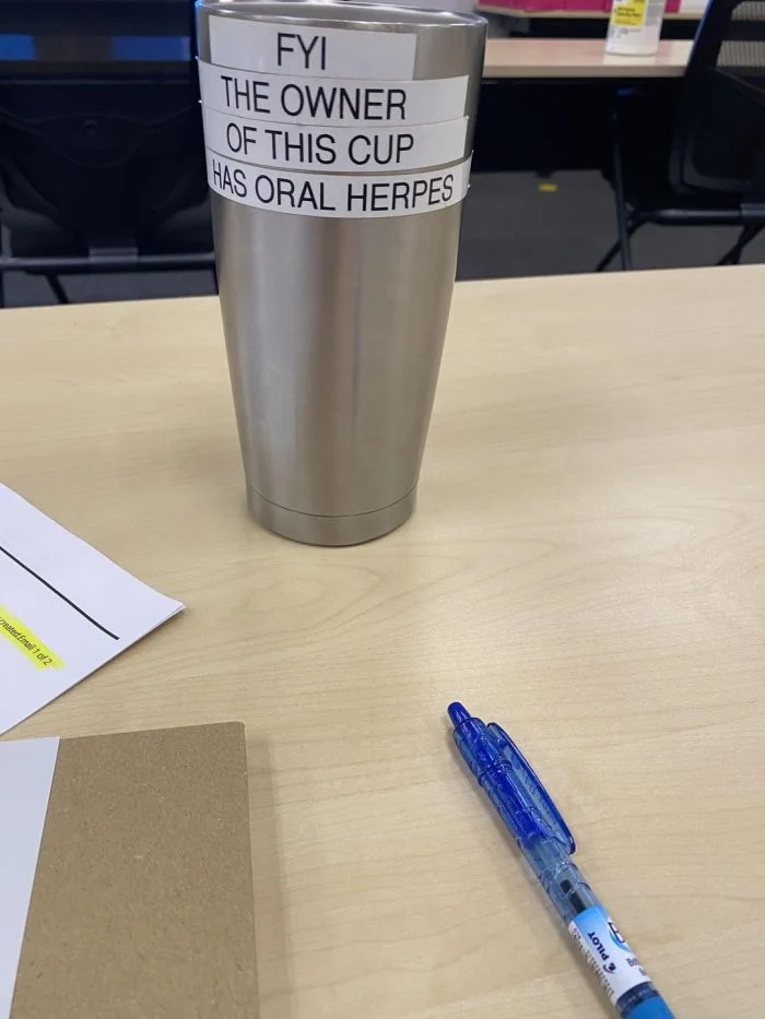 25. "Чтобы коллеги не трогали кружку, отец написал, что у него на губах герпес"