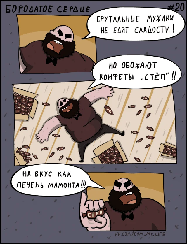 Предлагаем вам поднять настроение, рассматривая забавный комикс о сильном и бородатом мужчине с добрым сердцем, созданный художником из Санкт-Петербурга, Юрием Кутюмовым. Его творение под названием "Бородатое сердце" быстро завоевало сердца многих подписчиков.