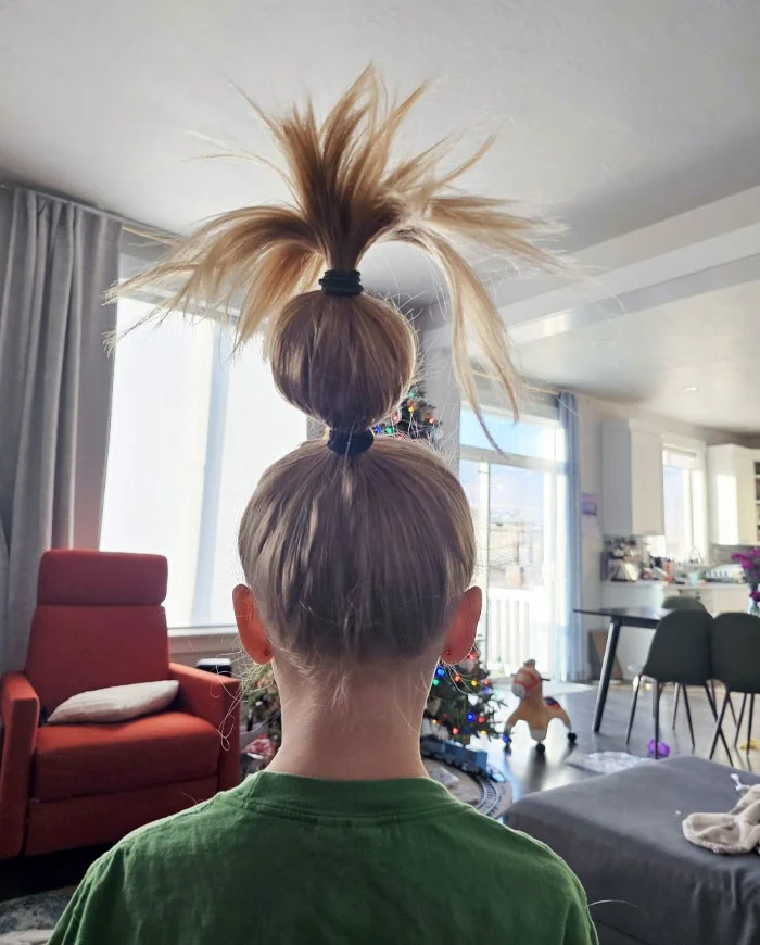 "У дочери праздник в школе, и мы сделали ей причёску. Не можем перестать смеяться".
