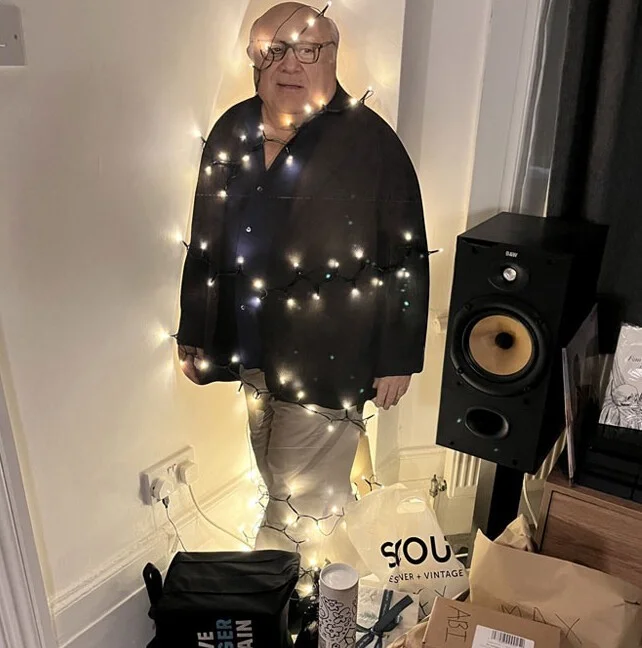 Кто-то использует картонного Дэнни Де Вито вместо ёлки.