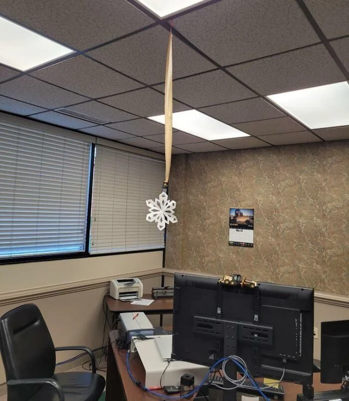 "Всё, теперь наш кабинет украшен к Новому году".